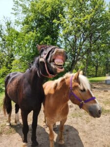 Over the past few years, our little barnyard has grown into a happy (and sometimes mischievous!) family. There’s Pearl, King, and Tigger — our gentle horses who love to watch guests stroll past their pasture. Hamish and Finnegan, our miniature donkeys, are always ready to greet you with curious noses and the occasional bray. And then there are the goats — Lulu and her playful kids, Millie, Sage, Daisy, and Ivy, Lulu’s Mom Rain, and our other 2 babies, Fern & Hazel — who keep us smiling every single day with their antics. Add in our flock of chickens, and mornings here start with fresh eggs and a chorus of clucks.